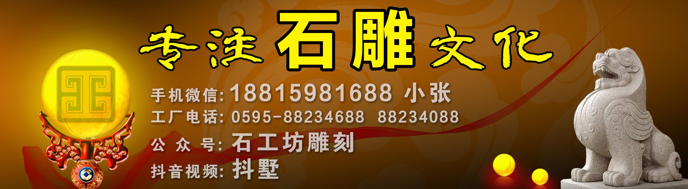 石工坊雕刻,位于素有中國(guó)石雕之都美稱(chēng)的福建省泉州·惠安[點(diǎn)擊了解惠安石雕]。我們以傳承石雕工藝、弘揚(yáng)中華文化為已任,網(wǎng)(wǎng)絡(luò)(luò)和聚集了一大批專(zhuān)業(yè)(yè)的雕刻和設(shè)(shè)計(jì)人才。長(zhǎng)期從事石雕設(shè)(shè)計(jì)雕刻和施工安裝。特別是園林景觀(guān)雕塑、寺廟古建雕刻及歐式建材雕刻等石頭雕刻工程。如動(dòng)物雕塑、人物雕像、景觀(guān)浮雕墻、石雕照壁、石欄桿、石牌坊、石亭子、石塔等。